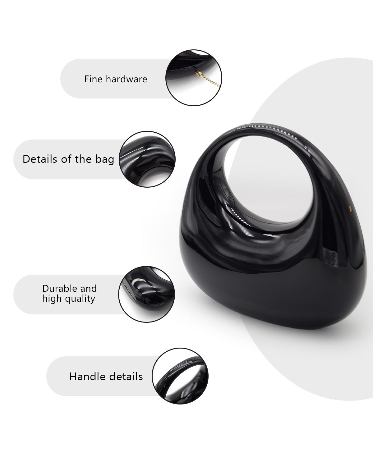 - Our evening clutch is crafted from high-end acrylic coated with a metallic lacquer for a durable, fade-resistant finish. It also boasts a smooth, refined finish and a stylish aesthetic.