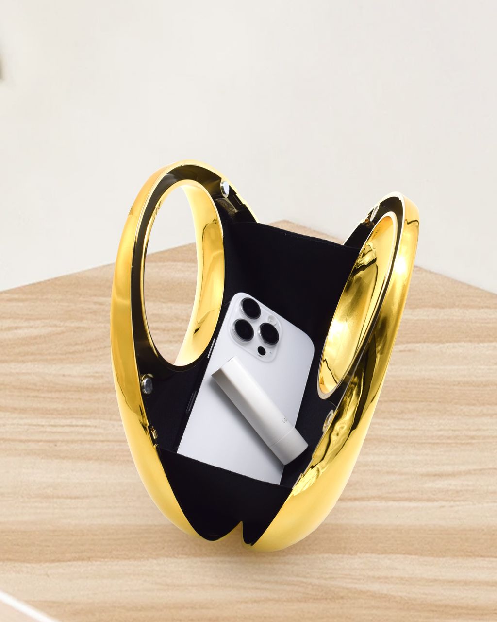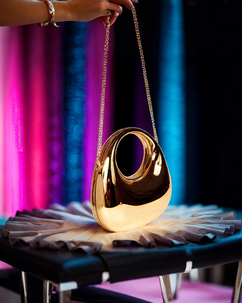 - Our evening clutch is crafted from high-end acrylic coated with a metallic lacquer for a durable, fade-resistant finish. It also boasts a smooth, refined finish and a stylish aesthetic.