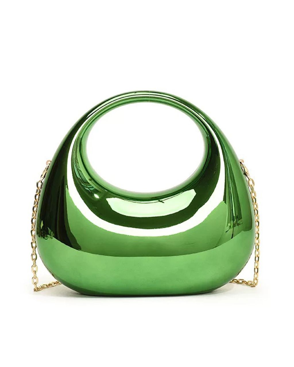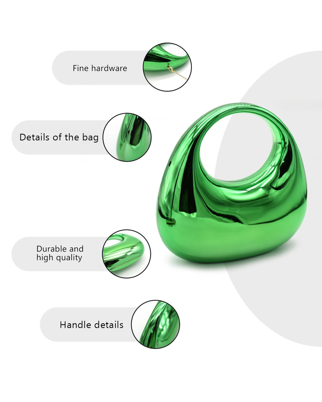 - Our evening clutch is crafted from high-end acrylic coated with a metallic lacquer for a durable, fade-resistant finish. It also boasts a smooth, refined finish and a stylish aesthetic.