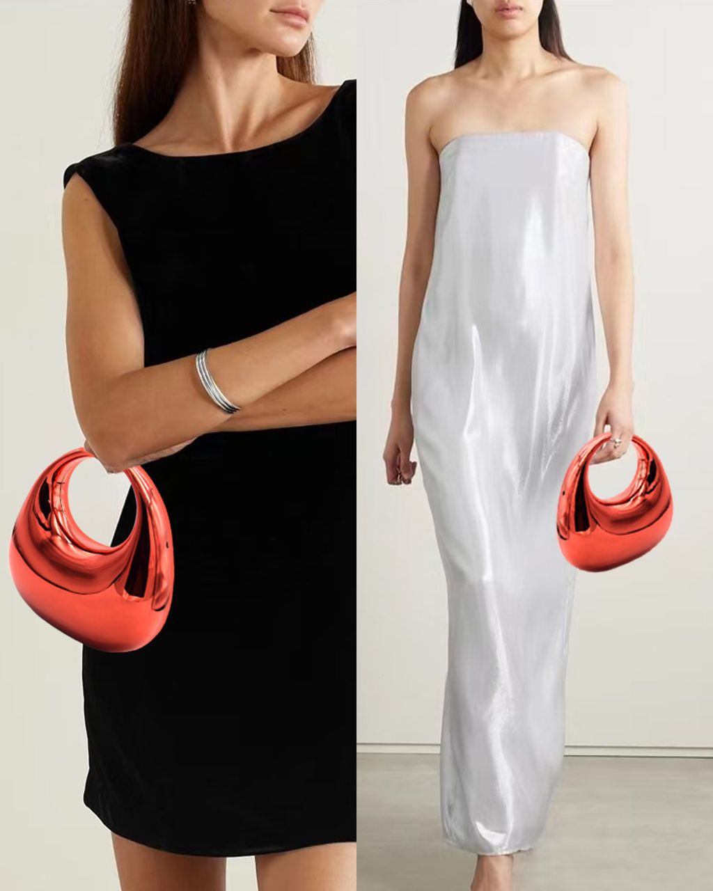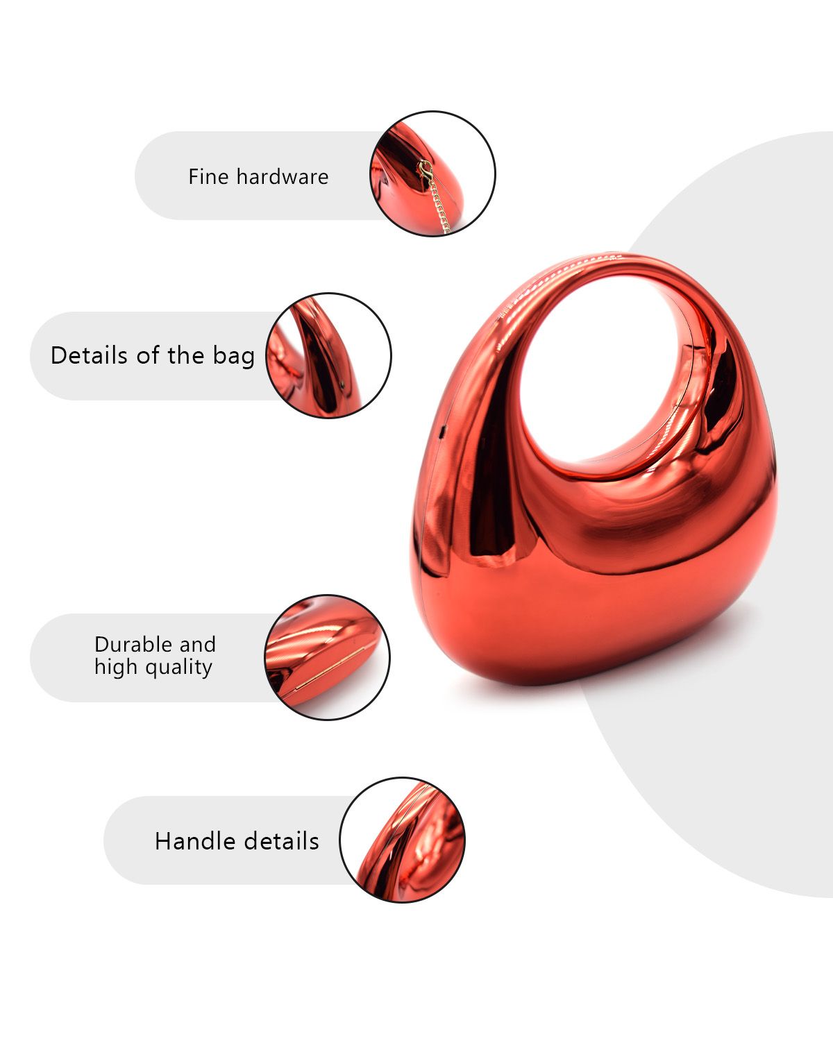 - Our evening clutch is crafted from high-end acrylic coated with a metallic lacquer for a durable, fade-resistant finish. It also boasts a smooth, refined finish and a stylish aesthetic.